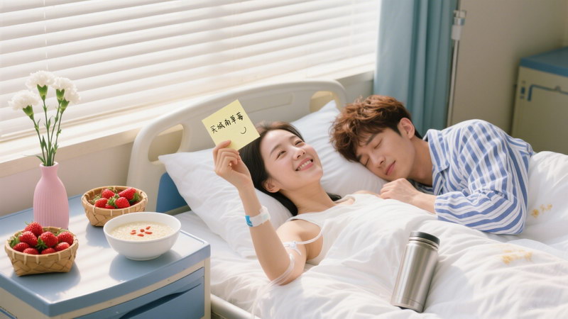 有一次,我醒来看见他趴在病床边睡着了,手里还攥着一张写满字的纸。我轻轻拿过来看,上面记着 “早上 7 点喂药,8 点喝粥,10 点帮她翻身”,还有一行小字:“她喜欢吃城南那家的草莓,明天记得去买。”