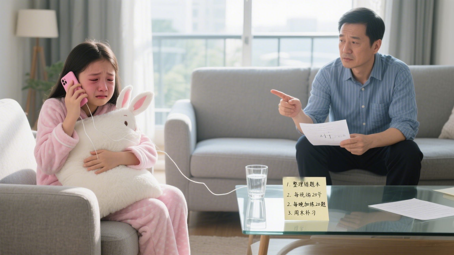 “我跟同学说‘这次数学考砸了,好难过’,同学会说‘我也考得不好,咱们下次一起加油’;可我跟爸爸说,他第一句话就是‘那你赶紧把错题整理了,再找老师补补课’。”14 岁的朵朵(化名)的话,说出了很多孩子的心声。