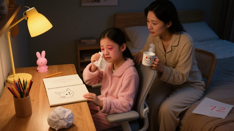 上周三晚上,我端着切好的水果走进女儿朵朵的房间,刚想叮嘱她早点休息,就听见她对着日记本小声说:“活着真没意思,每天除了学习就是考试,一点意思都没有。”