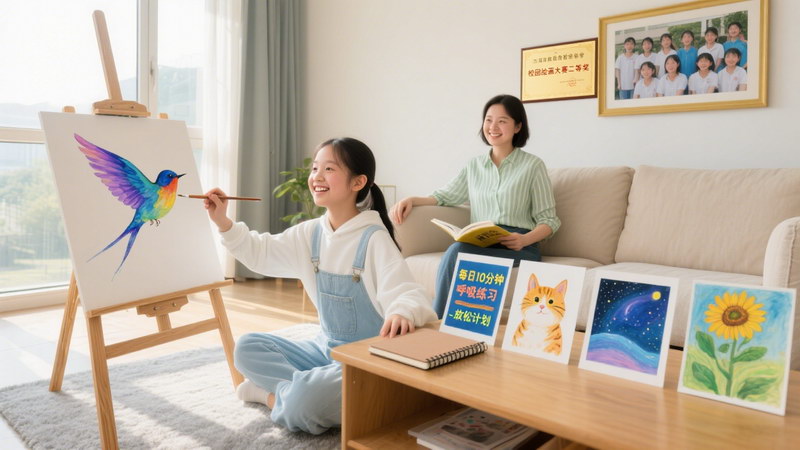 针对 “考试没考好” 的问题,我陪朵朵一起分析了试卷,发现她不是不会,而是因为太紧张,很多简单的题都做错了。我们一起制定了一个 “放松计划”:每天晚上花 10 分钟做深呼吸练习,考试前一天晚上不刷题,早点休息。